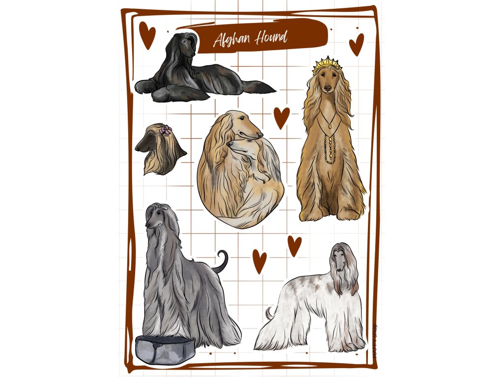 Jeden arch obsahuje:6x samolepky Afgánského chrta5x samolepky srdíček