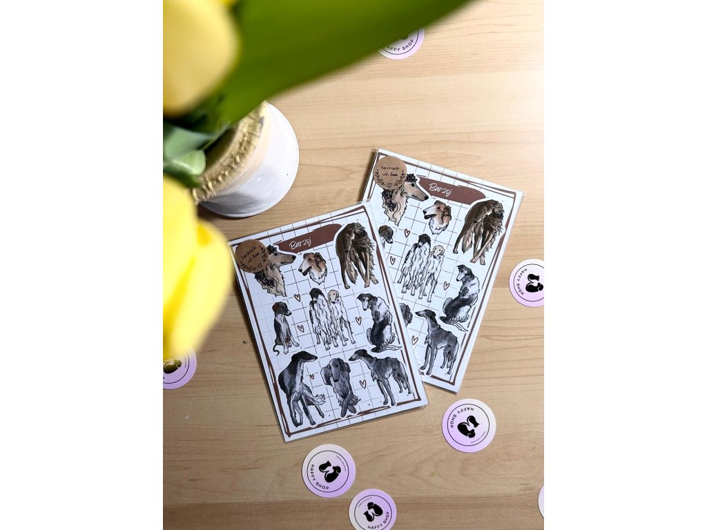 Jeden arch obsahuje:9x samolepky barzojů5x samolepky srdíček