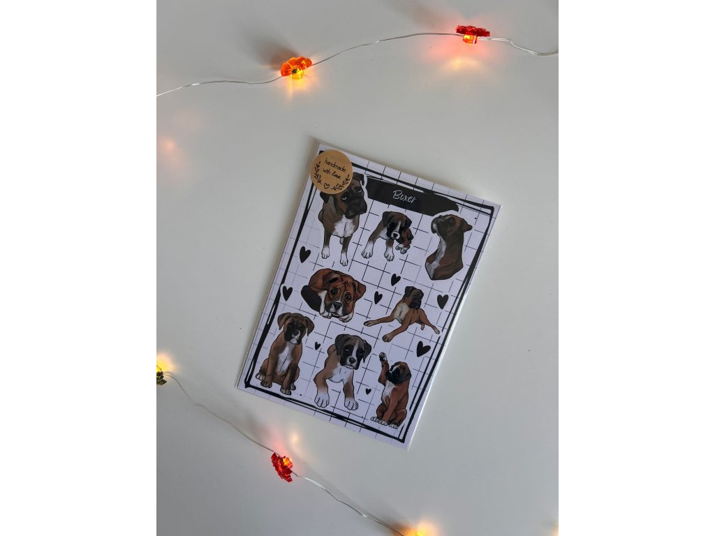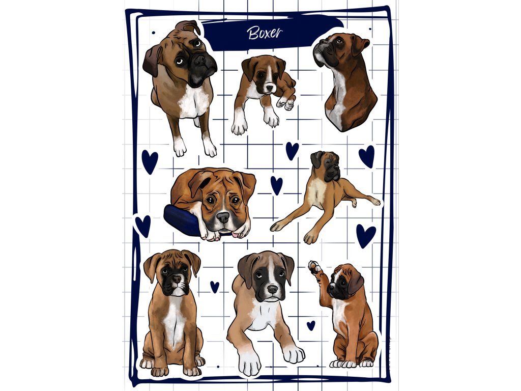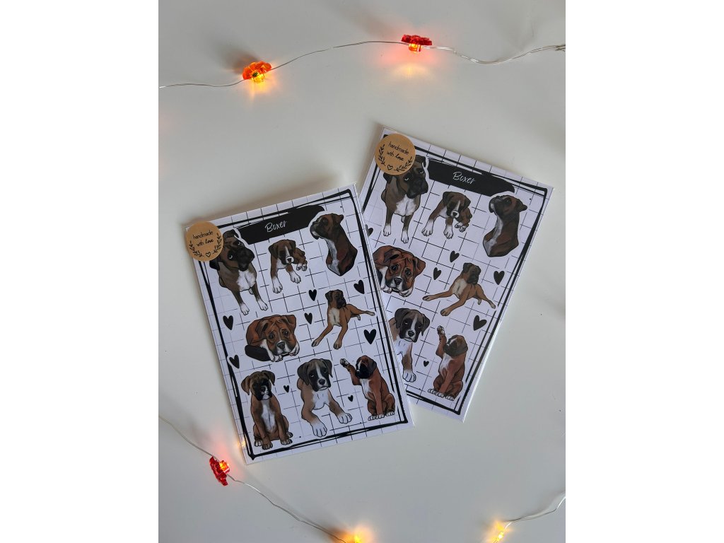 Jeden arch obsahuje:8x samolepky Boxer8x samolepky srdíček