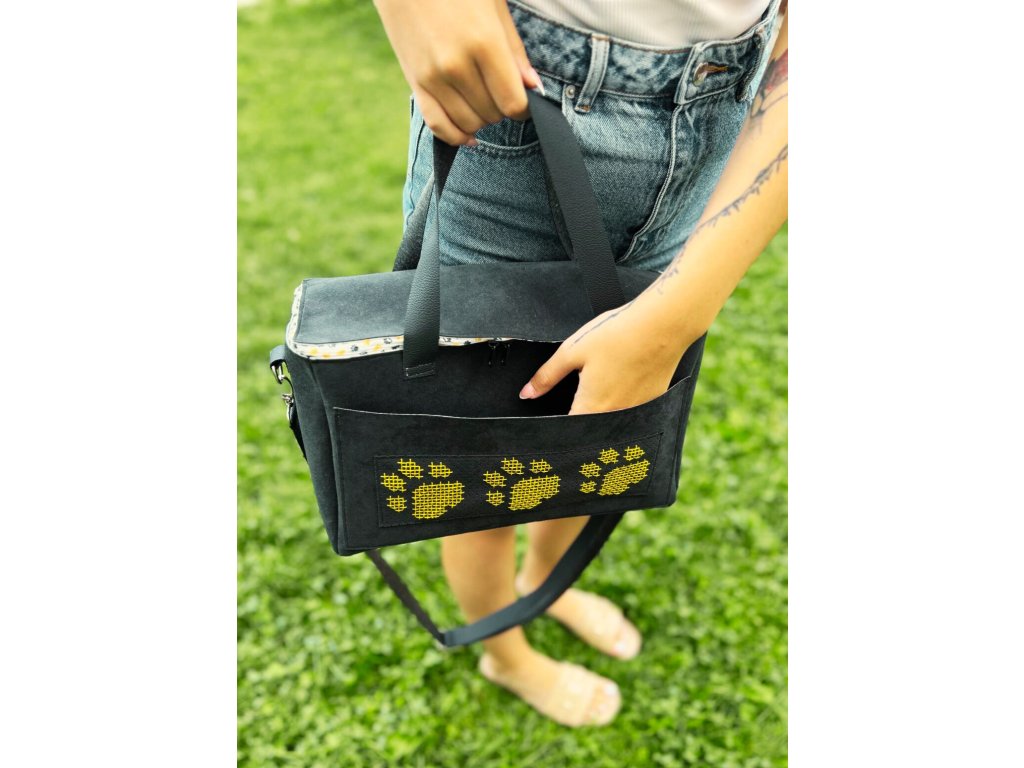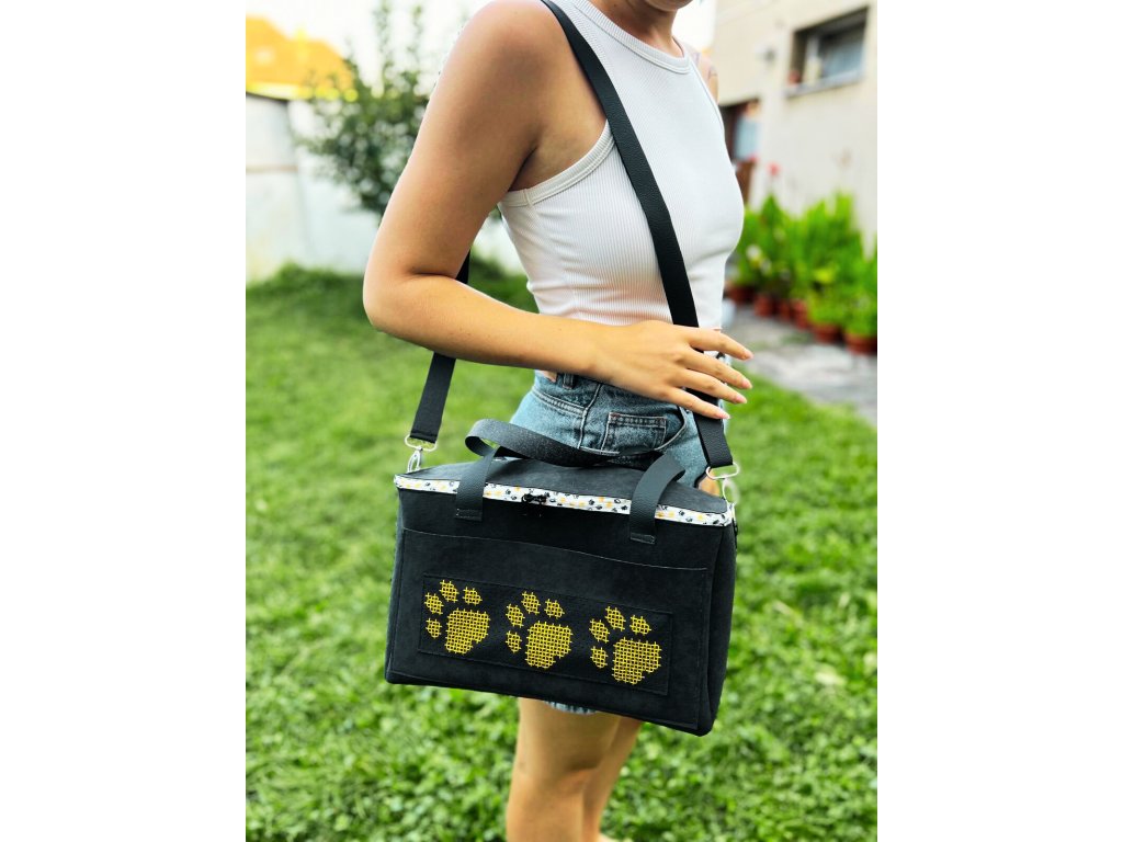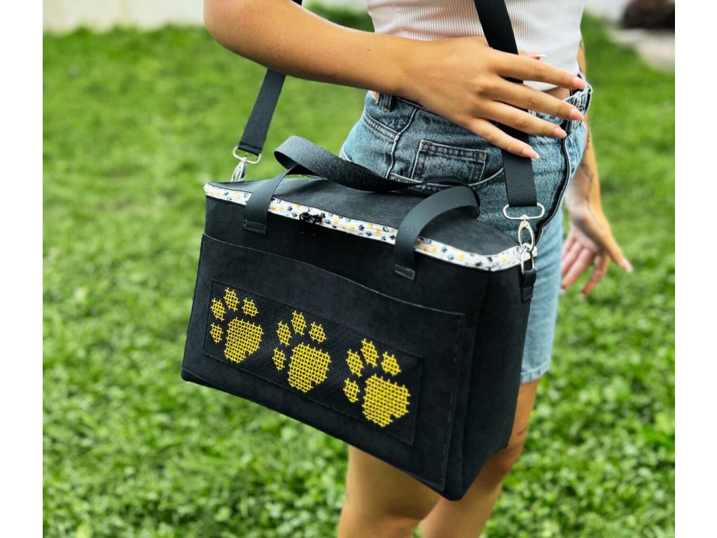 Funkční a udržitelná cestovní taška pro věci tvého pejska 🐶✨. Ušitá z recyklovaných materiálů, s důrazem na praktičnost i styl. Má odnímatelný popruh pro nošení přes rameno a pevná ucha do ruky. Vejde se do ní vše, co potřebuješ mít pro svého čtyřnohého parťáka vždy po ruce.
