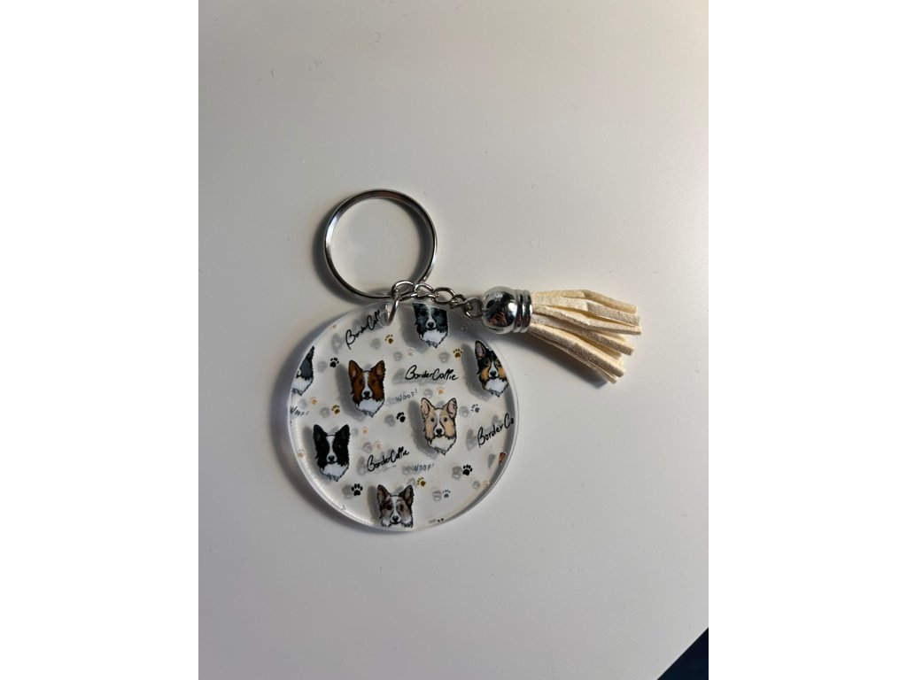 Transparentní kulatá klíčenka o průměru 5cm.Náhodný barevný střapec jako dárek.