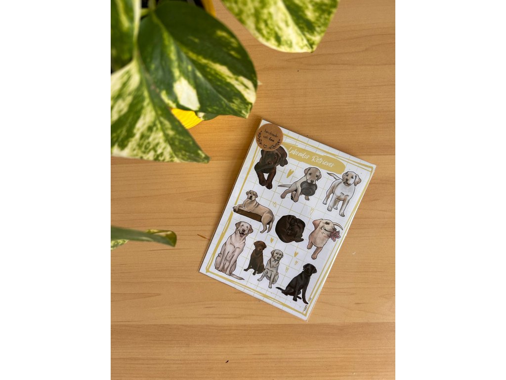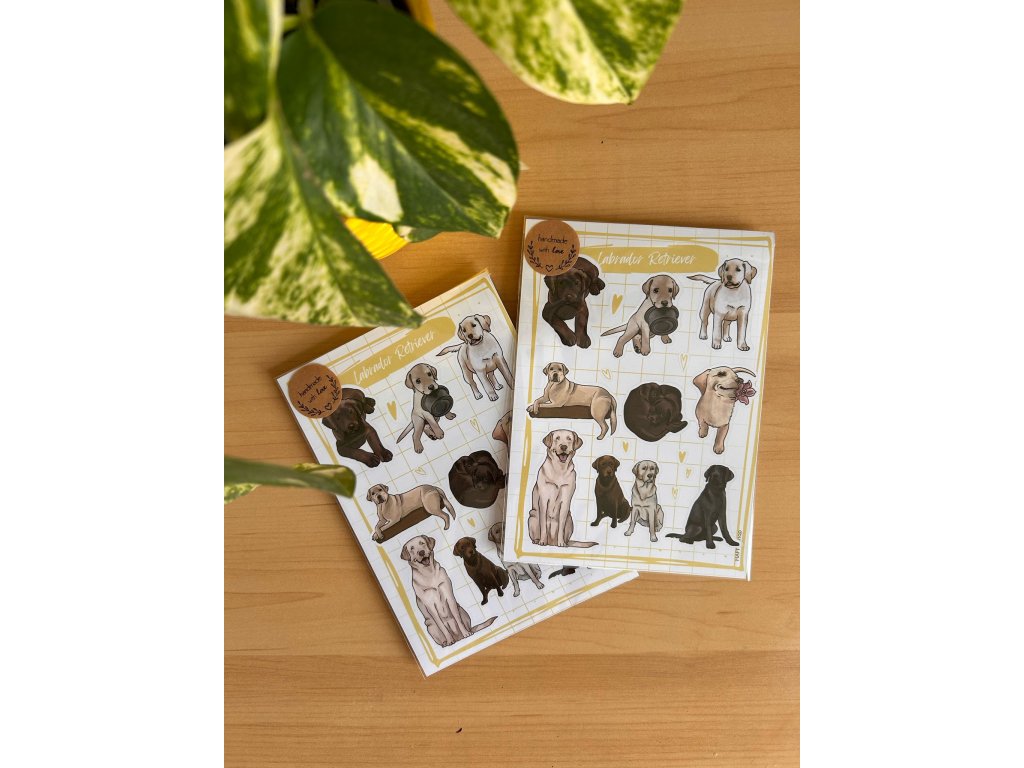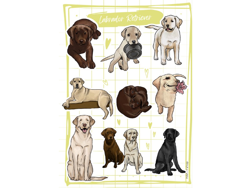 Jeden arch obsahuje:9x samolepky Labradorů7x samolepky srdíček