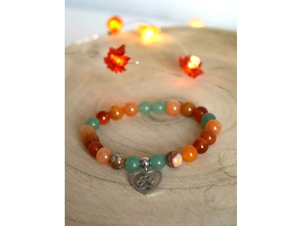 Originální oranžovozelený náramek se srdíčkovým přívěškem.