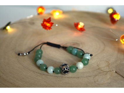 Originální pletený zelený náramek s přívěškem s motivem tlapičky.