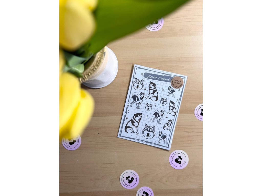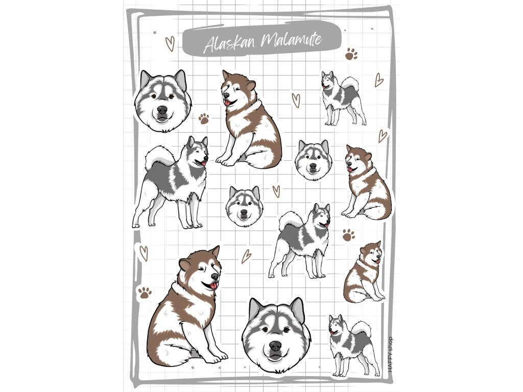 12x samolepky malamutů