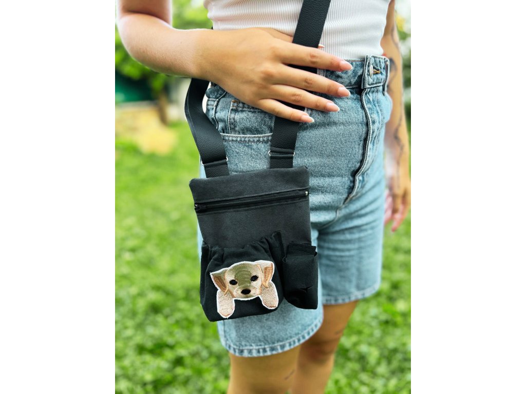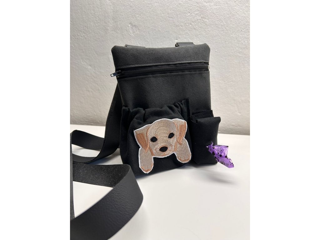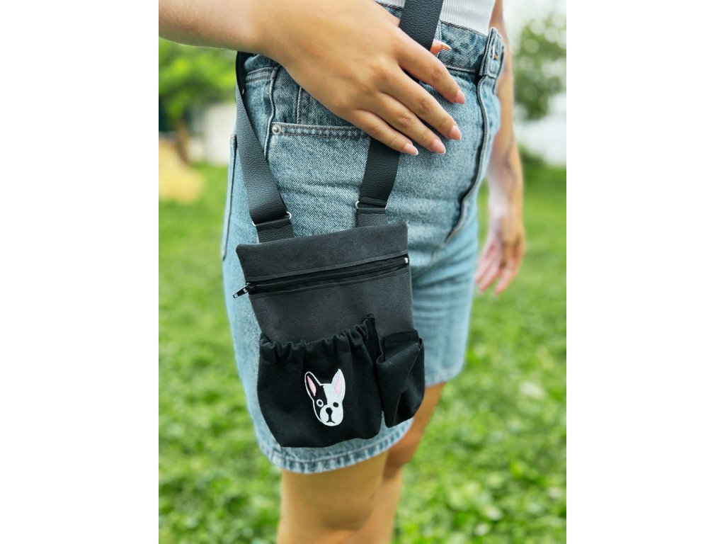 Originální ručně šitá taška přes rameno s motivem pejsků + kapsičky na pamlsky a pytlíčky.